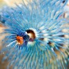Реснички жаберных лучей, которые распускаются, выкручиваясь из известковой трубки, служат одновременно для питания и дыхания животного.