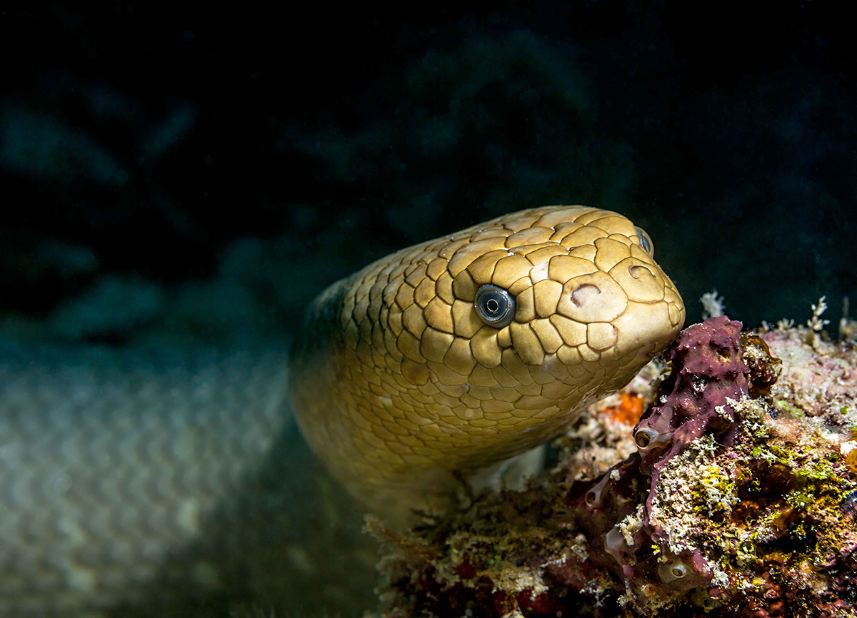 Плоский хвост огромного двухметрового тела, работающий как весло, позволяет ей плавать под водой намного быстрее человека в ластах, а длина зубов около 5 мм вполне достаточна, чтобы прокусить неопреновый костюм дайвера. Однако пасть этой змеи раскрывается не так широко, как у ее наземных сородичей, поэтому на теле человека есть лишь несколько по-настоящему уязвимых мест. Прежде всего, это тонкие кожные перепонки между пальцами рук.